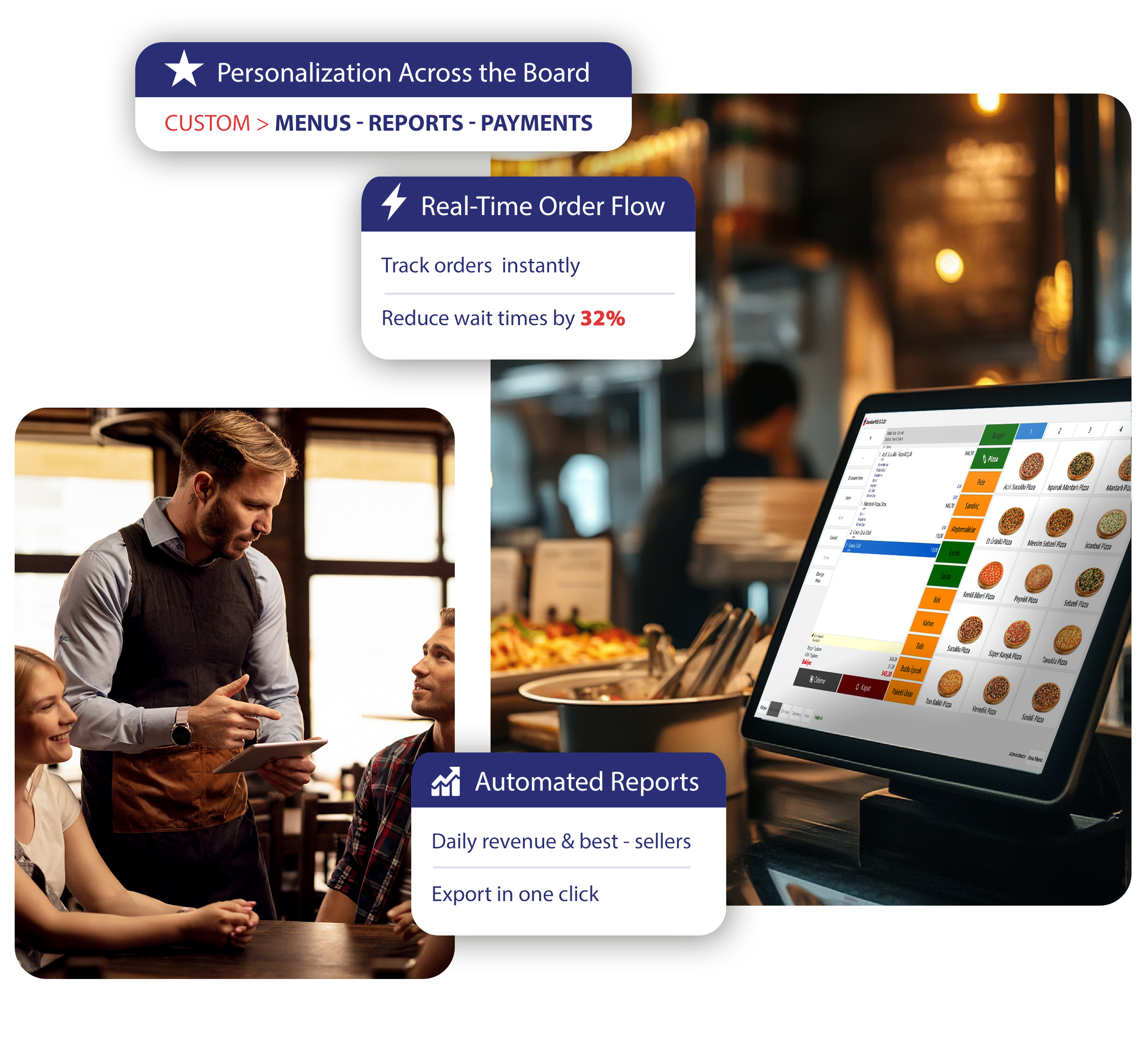 Work with an infrastructure that was specifically built for high-functioning restaurants. Instantly send orders to the kitchen display or printer. Print and split bills right at the table.