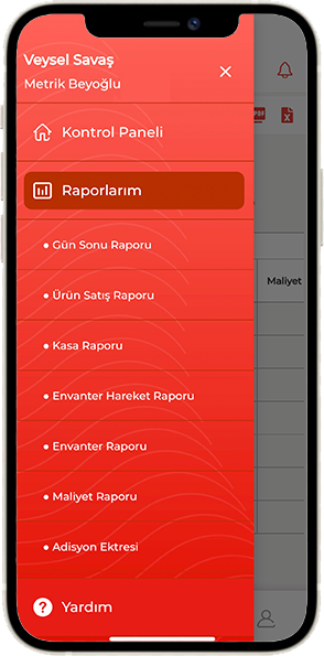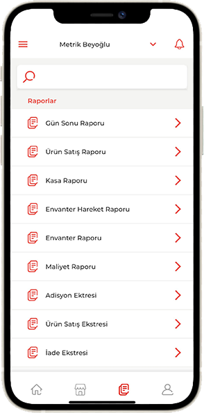 metrik, restoran raporları, ürün ve stok raporları